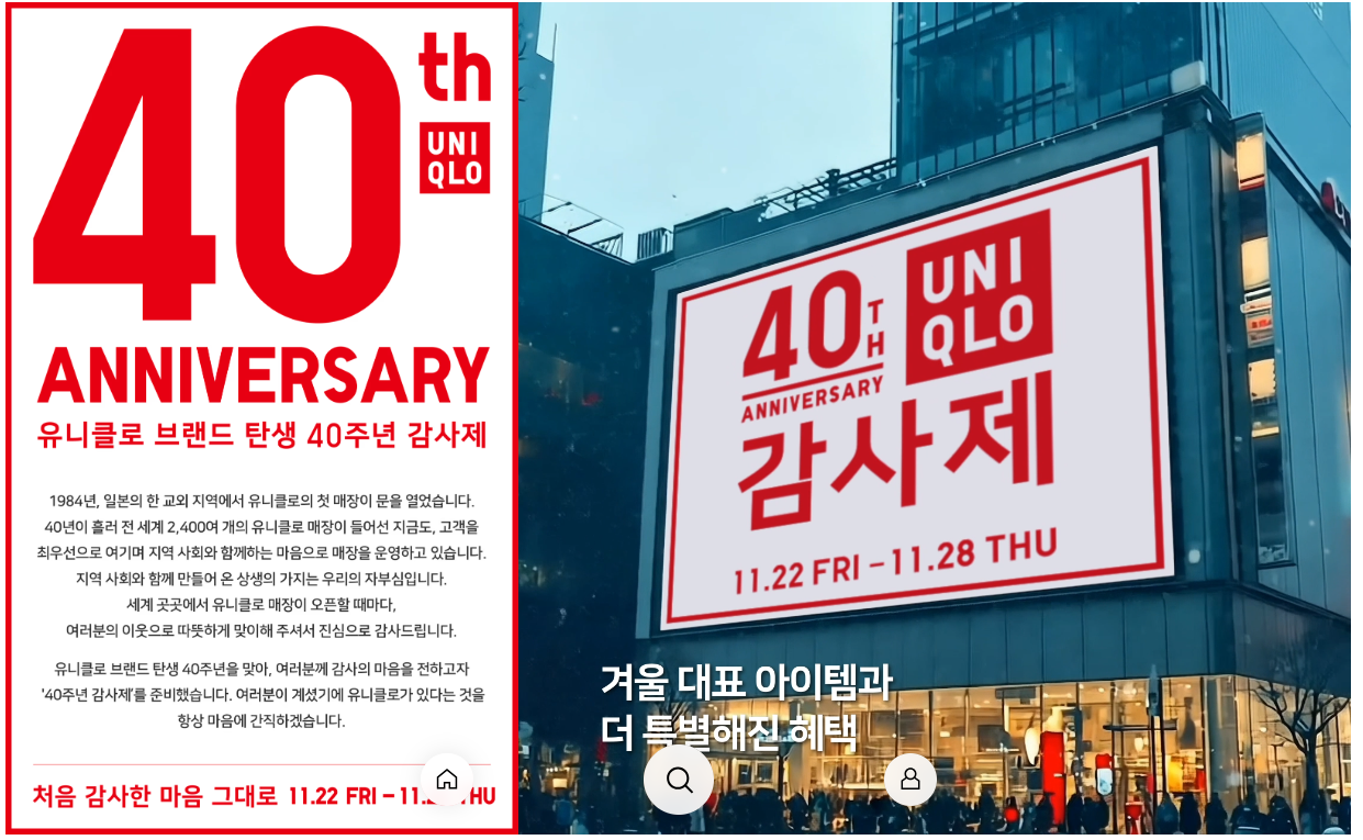 유니클로 브랜드가 론칭된 지 40주년이 되었다고 합니다. 유니클로 히트텍 한두 벌은 많이들 갖고 계실 텐데 올 겨울은 더 춥다고 하니 세일가로 저렴하게 히트텍 준비해 보세요.